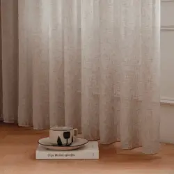Kant-en-klare zandsteen tape – naturel vitrages in een aardse tint. Ze filteren daglicht zacht en passen moeiteloos bij hout, linnen en rustige wittinten.