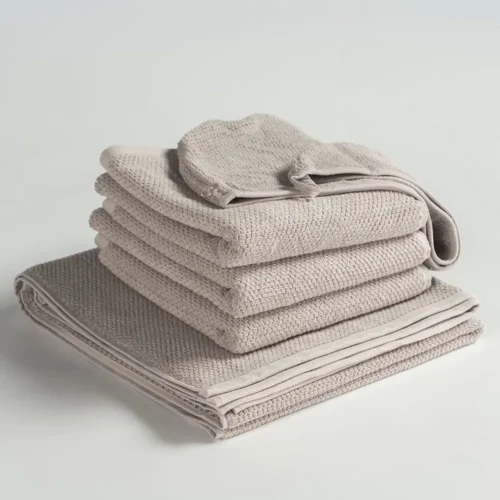 Badtextielset – Eco – Bio – Fairtrade katoen – 5 handdoeken – Beige. De serie UNO handdoeken van MAROYATHOME combineren kwaliteit, duurzaamheid en luxe tot op het hoogste niveau. Het beste katoen uit de regio en verantwoord geproduceerd met respect voor mens en milieu: Echt duurzaam dus. De meest uitgebreide certificering mogelijk, wat volgens ons ook de weg is naar de beste kwaliteit.