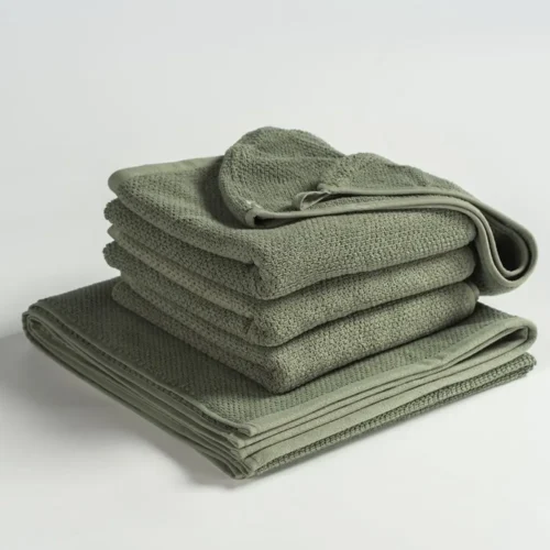 Badtextielset – Eco – Bio – Fairtrade katoen – 5 handdoeken – Vintage groen. De serie UNO handdoeken van MAROYATHOME combineren kwaliteit, duurzaamheid en luxe tot op het hoogste niveau. Het beste katoen uit de regio en verantwoord geproduceerd met respect voor mens en milieu: Echt duurzaam dus. De meest uitgebreide certificering mogelijk, wat volgens ons ook de weg is naar de beste kwaliteit.