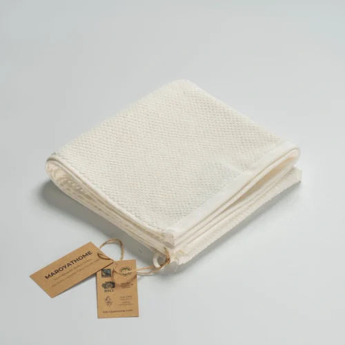 Handdoek – Eco – Bio – Fairtrade katoen – 50×100 cm – Off white. De serie UNO handdoeken van MAROYATHOME combineren kwaliteit, duurzaamheid en luxe tot op het hoogste niveau. Het beste katoen uit de regio en verantwoord geproduceerd met respect voor mens en milieu: Echt duurzaam dus. De meest uitgebreide certificering mogelijk, wat volgens ons ook de weg is naar de beste kwaliteit.