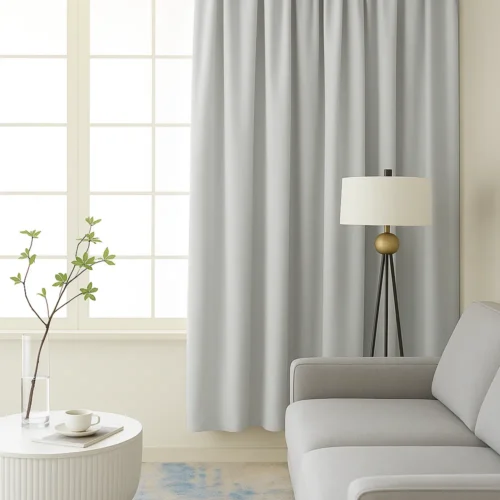 Lemoni Licht grijs semi verduisterend kant en klaar gordijn met plooiband hangend woonkamer