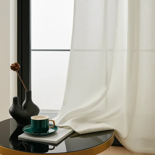 Olivia vitrage off white met linnen look en plooiband