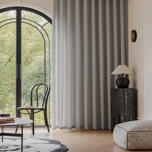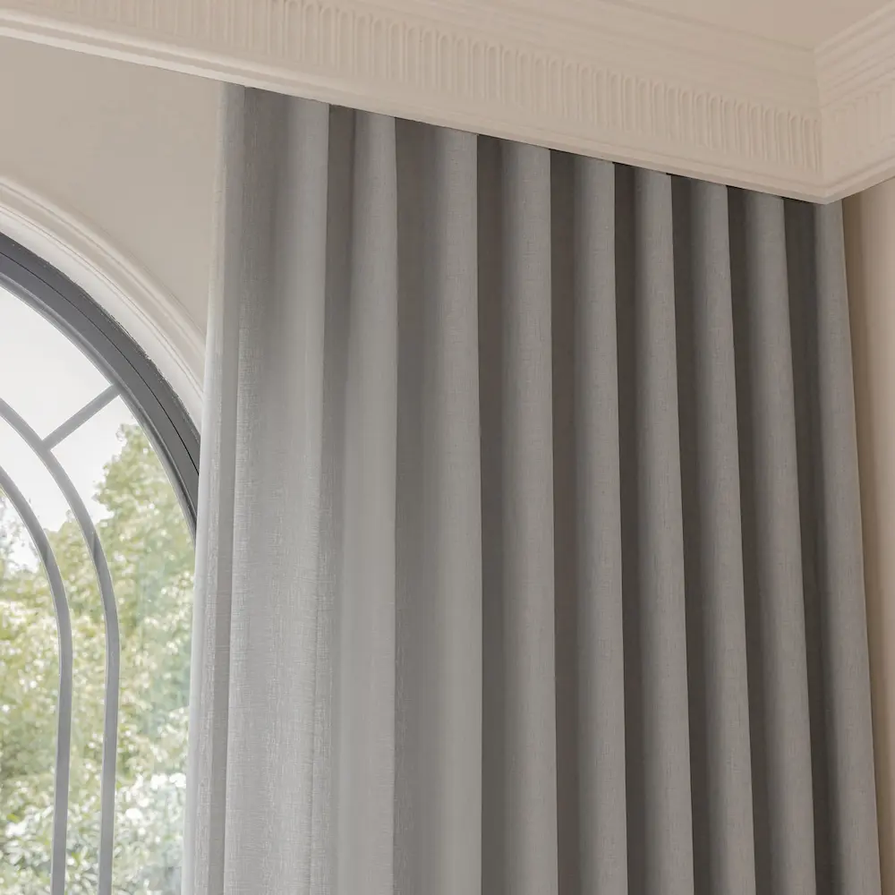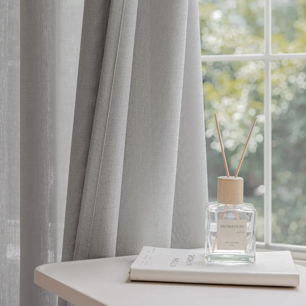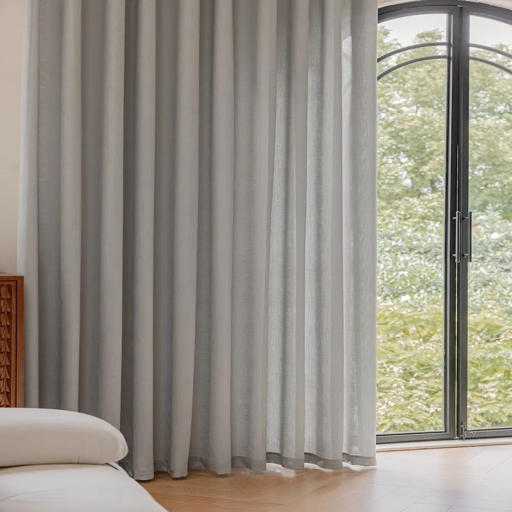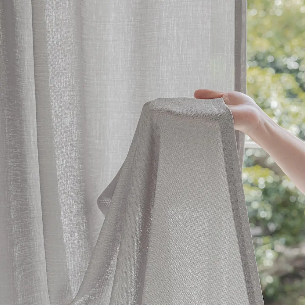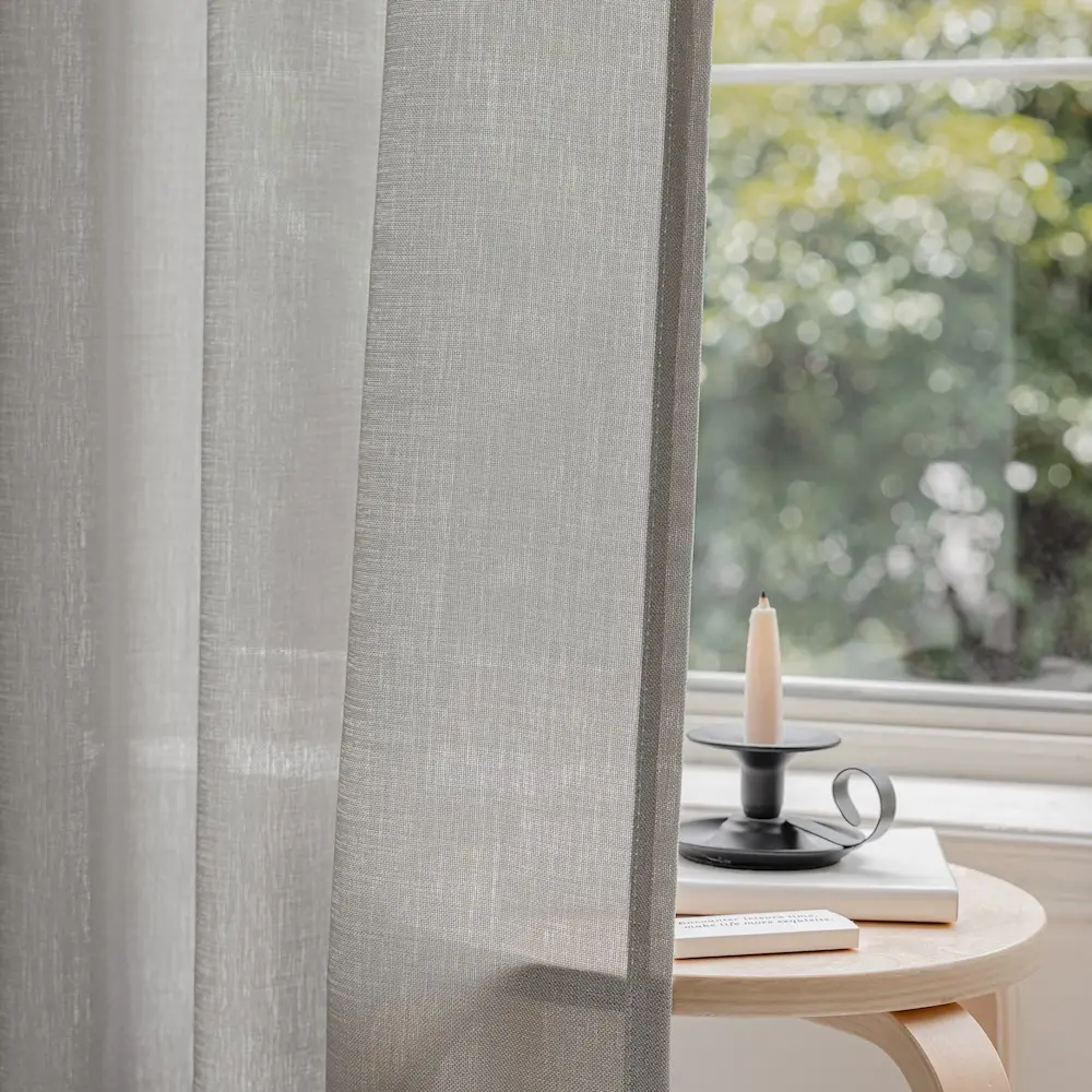 OLIVIA vitrage 150 x 270 met plooiband – linnen motief – Licht grijs groen